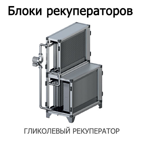 Данная система представляет собой два теплообменника, один из которых располагается в потоке приточного воздуха, а второй в потоке вытяжного и соединенных между собой замкнутым контуром по которому перемещается теплоноситель. Теплоноситель нагреваясь в потоке теплого воздуха переносит полученную тепловую энергию в поток холодного. Регулировка осуществляется с помощью циркуляционного насоса и трехходового вентиля. В качестве теплоносителя используются различные незамерзающие жидкости. Главным плюсом данного типа блоков является отсутствие подмеса вытяжного воздуха в приточный и то, что приточная и вытяжная системы могут располагаться на значительном удалении друг от друга. Помимо стандартного исполнения теплообменника, возможно использование рекуператоров со специальными покрытиями для защиты от агрессивных сред и повышенной влажности.