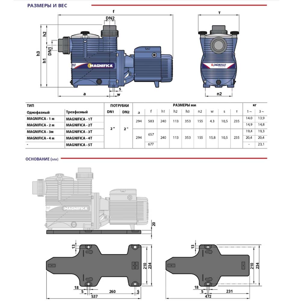 Cамовсасывающие насосы для бассейнов со встроенным фильтром предварительной очистки в корпусе насоса MAGNIFICA производства Pedrollo (Италия) используются для рециркуляции воды в бытовых и общественных плавательных бассейнах объемом до 180 м³.