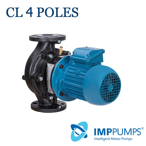 Центробежные моноблочные одноступенчатые циркуляционные насосы серии CL 4 POLES производства IMP Pumps с торцевым уплотнением вала, со стандартным электродвигателем, либо с электродвигателем с удлиненным валом. Корпус насоса с соостными всасывающими и напорными патрубками одного диаметра.