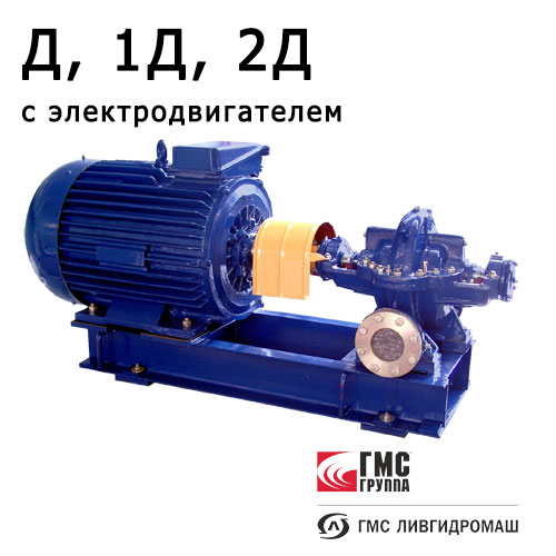 Насосы Д, 1Д, 2Д — центробежные двустороннего входа производства АО «ГМС Ливгидромаш» предназначены для перекачивания воды (чистая, пластовая, морская, горячая), для нефтепродуктов (вода с нефтепродуктами), для химически активных сред. Область применения центробежных насосов двухстороннего входа типа Д, 1Д, 2Д: для водного хозяйства и ЖКХ (водозабор, водоснабжение), для нефтегазовой отрасли (поддержание пластового давления, водоснабжение), для теплоэнергетики (водоснабжения), для атомной энергетики, для металлургии и горнодобывающей промышленности, для пожаротушения.
