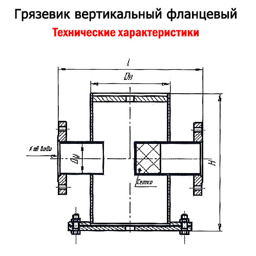 Грязевик вертикальный фланцевый предназначен для фильтрации или очистки воды от крупных и средних взвешенных частиц (ячейка фильтрующего элемента 5 мм) в трубопроводах горячего водоснабжения и теплосети с температурой не более 150°С.