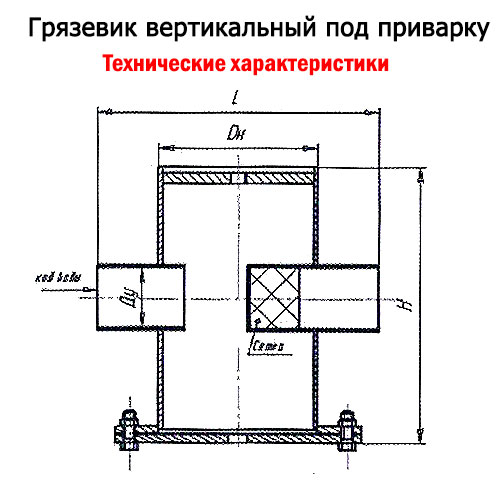 Грязевик вертикальный под приварку предназначен для фильтрации или очистки воды от крупных и средних взвешенных частиц (ячейка фильтрующего элемента 5 мм) в трубопроводах горячего водоснабжения и теплосети с температурой не более 150°С.