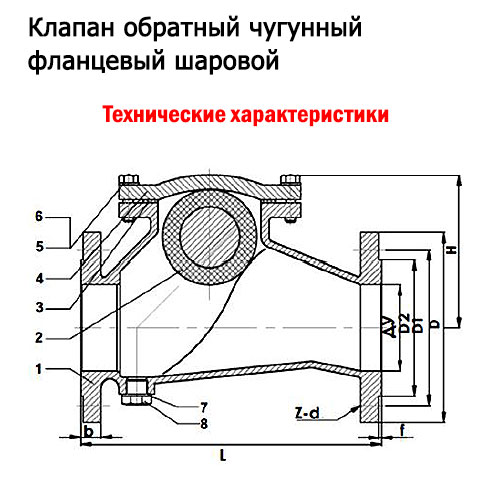 Технические данные обратных клапанов чугунных фланцевых шаровых