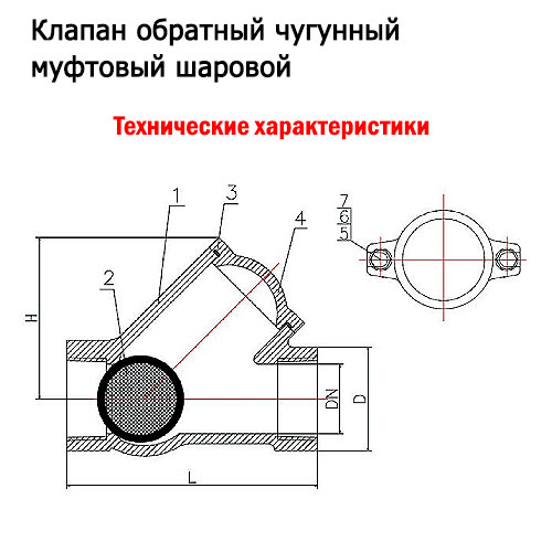Технические данные обратных клапанов чугунных муфтовых шаровых