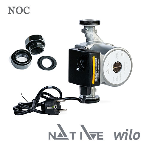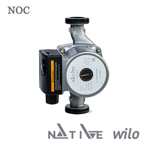 Высокопроизводительный стандартный циркуляционный насос с мокрым ротором и резьбовым соединением NOC производства Native (Wilo) для установки системах радиаторного отопления и теплого пола, для установки как отдельно, так и в группы быстрого монтажа.