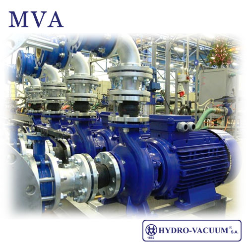 Насосы MVA и MVB производства Hydro-Vacuum – центробежные одноступенчатые моноблочные насосы, в которых рабочее колеса насоса и двигателя устанавливаются на общем валу. Наиболее существенные размеры корпуса соответствуют стандартом EN 733 (бывший стандарт DIN 23255). Всасывающий патрубок и напорный патрубок соответствуют стандарту ISO 7005-2/PN 16. Насосы MVA и MVB непосредственным образом связаны с электродвигателями соответствующими стандартам VDI и IEC. В связи с модульным строением двигатель, уплотнительная крышка и ротор могут выниматься без удаления из системы спирального корпуса. Моноблочные насосы MVA и MVB легче и меньше по сравнению с нормальными центробежными насосами с похожими гидравлическими характеристиками.