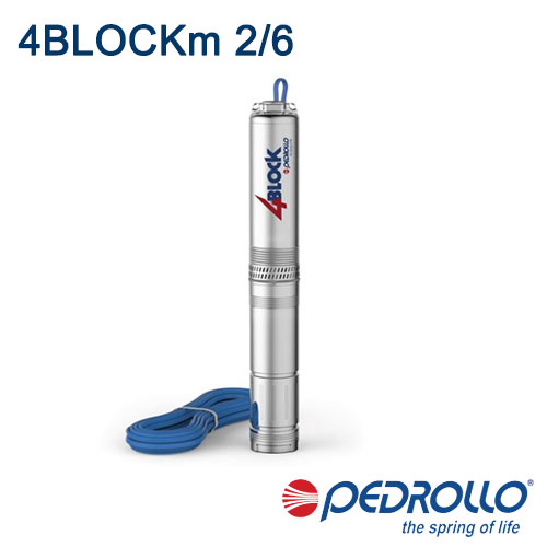 Насосы скважинные Pedrollo 4BLOCKm 2/6 это 4-дюймовый моноблочный электронасос, который рекомендуется для перекачки чистой воды с содержанием песка не более 200 г/м3. Подходит для перекачки чистой воды из колодцев. Благодаря своей высокой эффективности, надежности и простоте монтажа скважинные насосы 4BLOCKm подходят для бытового применения, для подачи воды в составе напорной системы бустерного набора, для орошения и т.д.