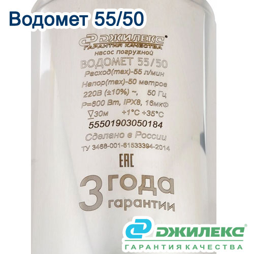 Погружной насос Водомет 55/50 производства компании ТД Джилекс (Россия) для подачи чистой воды из скважин (с внутренним диаметром от 110 мм и более), колодцев, резервуаров и открытых водоемов, для комплектации систем автоматизированного водоснабжения дома и орошения.