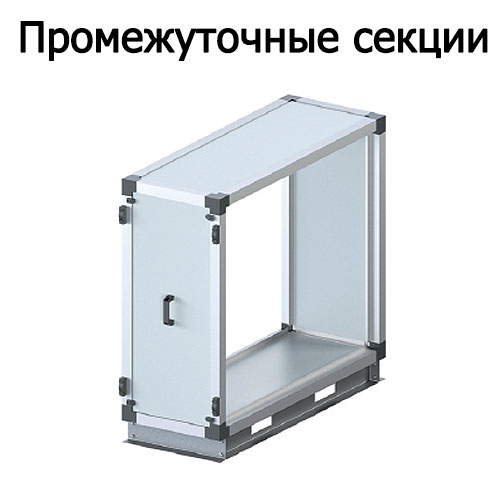 Промежуточные секции предназначены для выравнивания воздушного потока до или после функциональных блоков, а также для проведения технического обслуживания элементов центрального кондиционера. Чаще всего устанавливается перед блоком вентилятора со свободным колесом и после блока вентилятора с ременной передачей, если он не является конечным элементом установки.