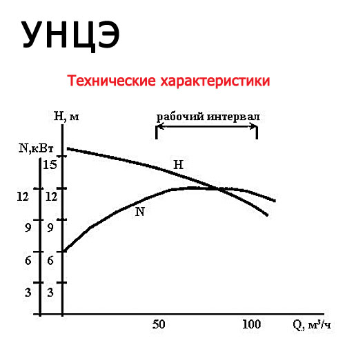 Насос УНЦЭ-100/16 — центробежный горизонтальный самовсасывающий, одноступенчатый с камерным входом, с приводом от электродвигателя (или двигателя внутреннего сгорания в модификации УНЦД-100/16) через ценную муфту. Насос и двигатель установлены на раме (в виде салазок) или колесной тележке.