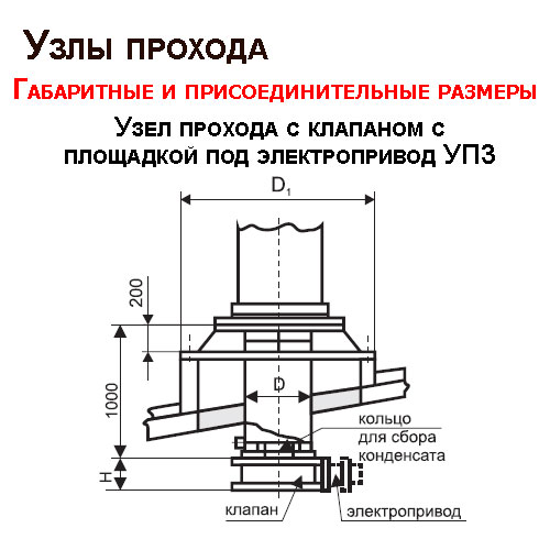 - узел прохода с клапаном и площадкой под исполнительный механизм (электропривод) и с кольцом для сбора конденсата — УП 3-11 — УП 3-21.