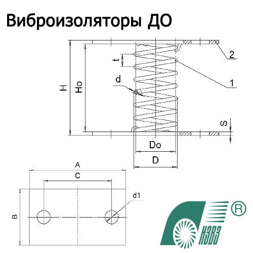 Виброизолятор ДО состоит из пружины (1), на торцевых витках которой жестко закреплены штампованные пластины (2).