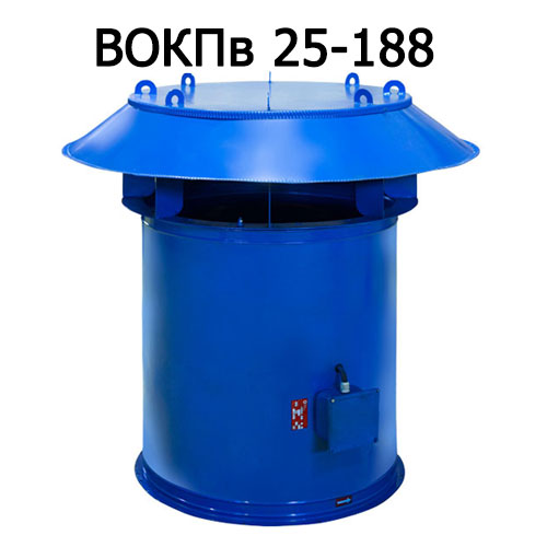 В крышных вентиляторах ВКОПв 25-188 в качестве осевых используются вентиляторы типа ВО 25-188. Входная часть агрегата выполнена в виде входной шахты, предотвращающей поступление атмосферных осадков в вентилятор и обслуживаемое помещение.