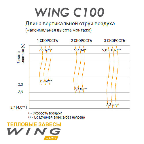 Технические характеристики воздушной завесы без источника тепла WING C100 AC и WING C100 ЕС: