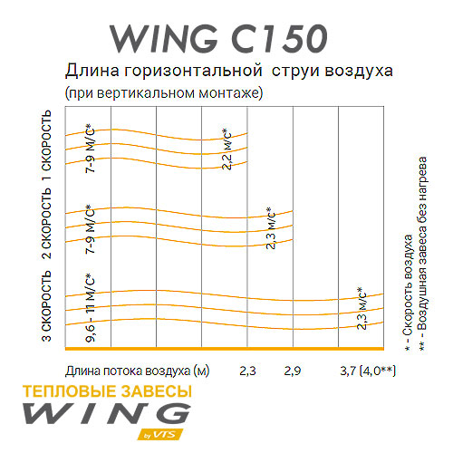 Технические характеристики воздушной завесы без источника тепла WING C150 AC и WING C150 ЕС: