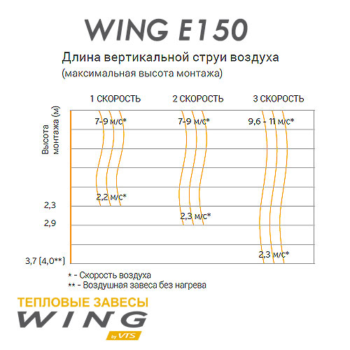 Технические характеристики воздушной завесы с водяным источником тепла WING E150 AC и WING E150 ЕС: