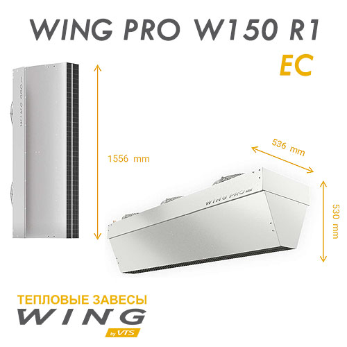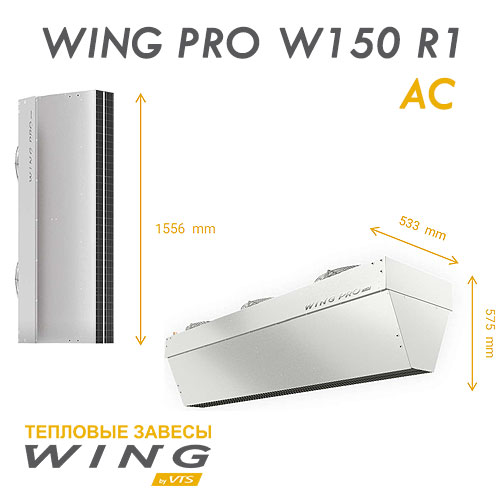 Технические характеристики воздушной завесы с водяным источником тепла WING PRO W150 R1 AC и WING PRO W150 R1 ЕС: