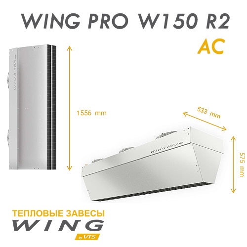 Технические характеристики воздушной завесы с водяным источником тепла WING PRO W150 R2 AC и WING PRO W150 R2 ЕС: