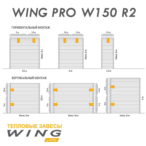 Преимущества воздушной завесы WING PRO: за счет недопущения наружного воздуха в помещение защита температурных условий в помещении, снижение затраты на поддержание микроклимата в помещении, универсальный размер, возможность работы в вертикальном и горизонтальном положении, быстрый, лёгкий монтаж.