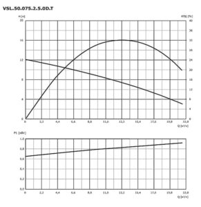 Погружной насос с закрытым рабочим колесом, кольцевым основанием для свободной установки, напорным патрубком DN50, поставляется в комплекте с кабелем длиной 10 метров со свободным концом. Насос оснащен трехфазным (3×380 В) асинхронным двигателем, класс защиты IP68, класс изоляции Н (180 °С), максимальное количество пусков в час — 20. Погружной насос для горячей воды VSL-T укомплектован высококачественным кабелем, механическим уплотнением, уплотнительными кольцами, подшипниками NSK, которые могут выдерживать высокие температуры до 95 °С. Колено (переход) входит в комплект насоса.