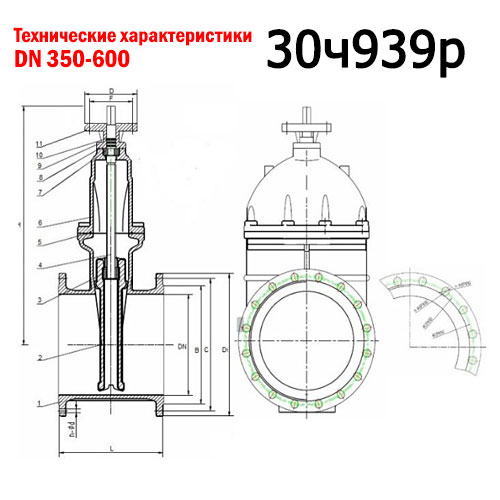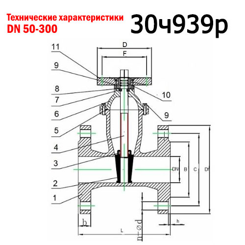 Задвижки фланцевые 30ч939р с обрезиненным клином под электропривод состоят из корпуса, крышки и устройства для закрытия и открытия прохода рабочей среды через корпус. Отпирание и запирание задвижки производится путем передачи крутящего момента от электропривода к затвору через шток. Направление рабочей среды – любое. Установочное положение любое – кроме привода вниз.